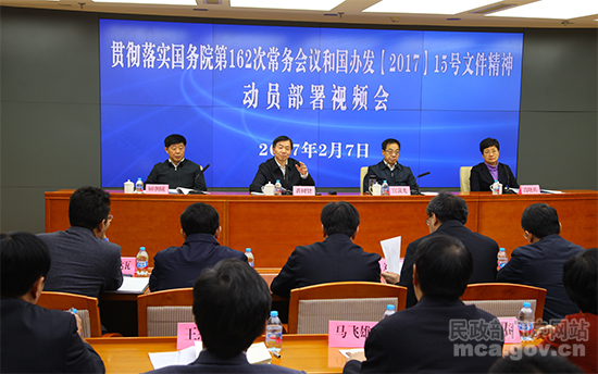 2月7日,民政部召开视频会议,对贯彻落实国务院第162次常务会议精神和《国务院办公厅关于加强困难群众基本生活保障有关工作的通知》要求进行部署。民政部党组书记、部长黄树贤主持会议并讲话。